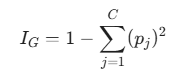 Bir düğümdeki j sınıfının oranı pj olmak üzere, Gini Kirliliği IG şu şekilde hesaplanır: