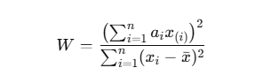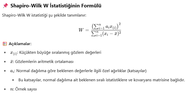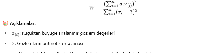 Shapiro-Wilk W istatistiği şu şekilde tanımlanır: