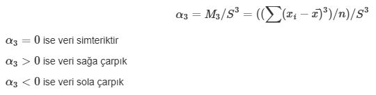 α3>0 ise veri sağa çarpık