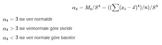 α4>3 ise veri normale göre sivridir