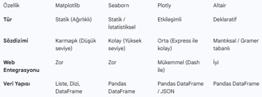 2. Modern ve Etkileşimli Kütüphaneler: Web ve Dashboard