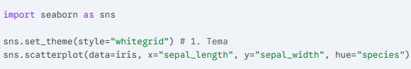 Temalandırma (sns.set_theme()): Arka plan rengi, çizgi kalınlığı gibi estetik ayarlar genel bir fonksiyonla yapılır.